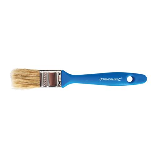 Disposable utility brush with pure bristles, polymer handle and zinc-plated steel ferrule. Ideal for cleaning parts, painting trim and touch-up work. For use with paint, resin, glue, acetone and other solvents.