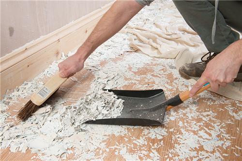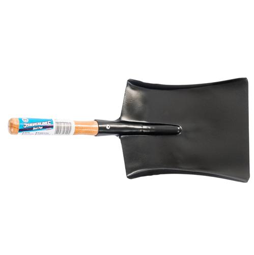 Silverline Traditional dust pan with pressed steel head, durable hardwood handle and raised shoulders to eliminate spillage.