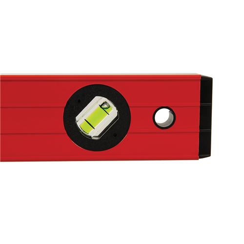 Powder-coated extruded aluminium construction (1.2mm thick). Milled top and bottom faces for enhanced accuracy. Ribbed sides, protective end caps and hanging hole. Highly visible, UV-resistant 45°, 90° and 180° vials. Accurate to 1mm/m.
