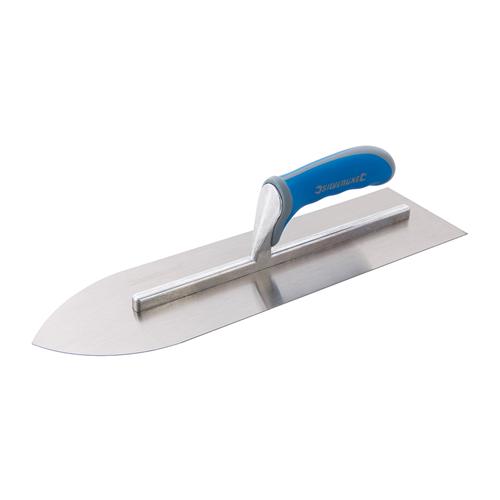 Hardened and tempered carbon steel blade. Comfortable, soft-grip handle for prolonged use. Pointed for corner finishing. Pistol grip for controlled use. For rendering, levelling, smoothing and finishing large, flat areas.