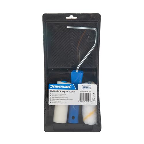 Polypropylene tray and handle with strong metal shaft. Includes medium-pile sleeve for emulsion paint and foam sleeve for gloss and varnish. Ideal for detailed and small-scale painting on smooth surfaces. 100mm sleeve length.