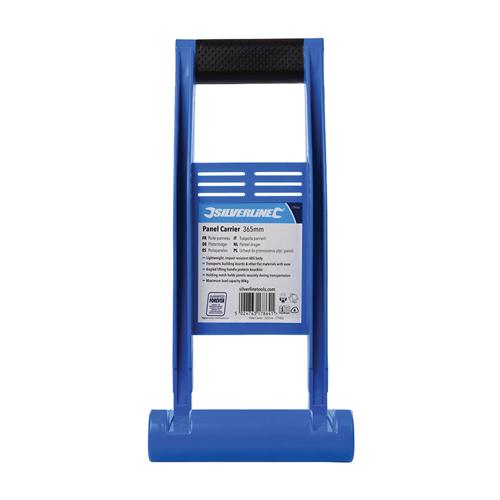 Lightweight and impact-resistant ABS panel carrier for transporting building boards and other flat materials with ease. The ergonomic lifting handle is angled away from the material to protect knuckles, and the holding notch is carefully designed to hold the panel securely during transportation. Maximum capacity 80kg. H x L x W: 365 x 166 x 73mm.