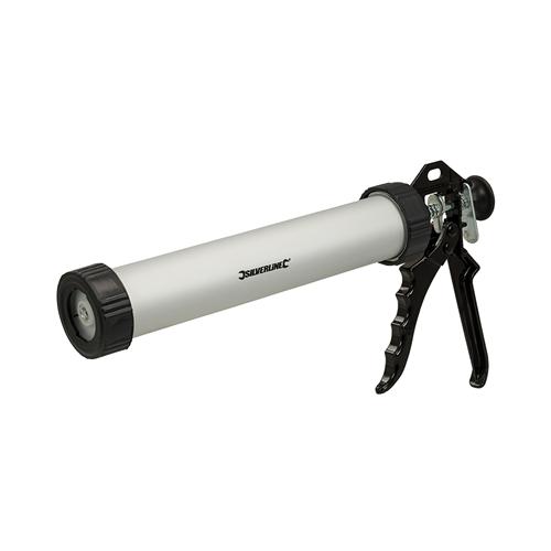Metal applicator gun for use with sausage silicone packs. Also suitable for use with standard sealant cartridges.